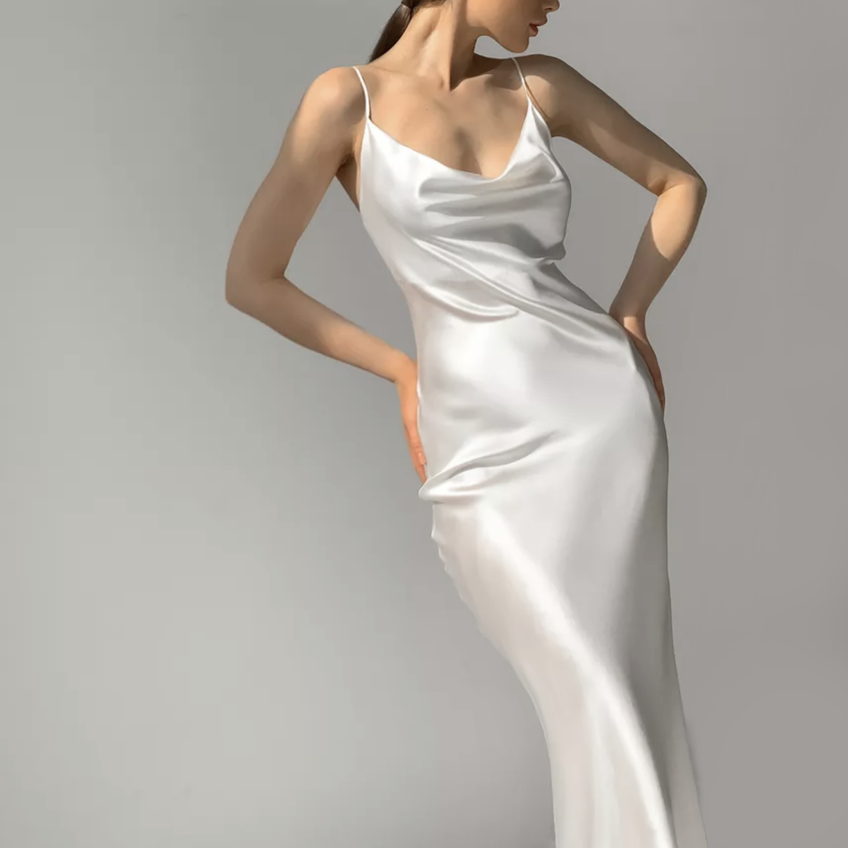 • Белое платье из атласной ткани по фигуре (42/46);